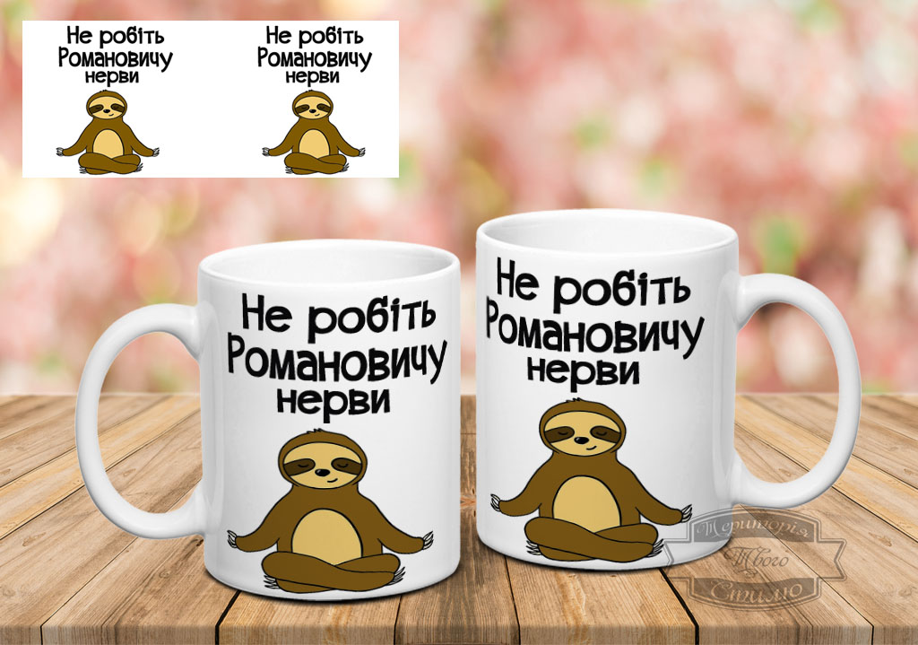 Чашка, з написом “Не робіть Романовичу нерви”.