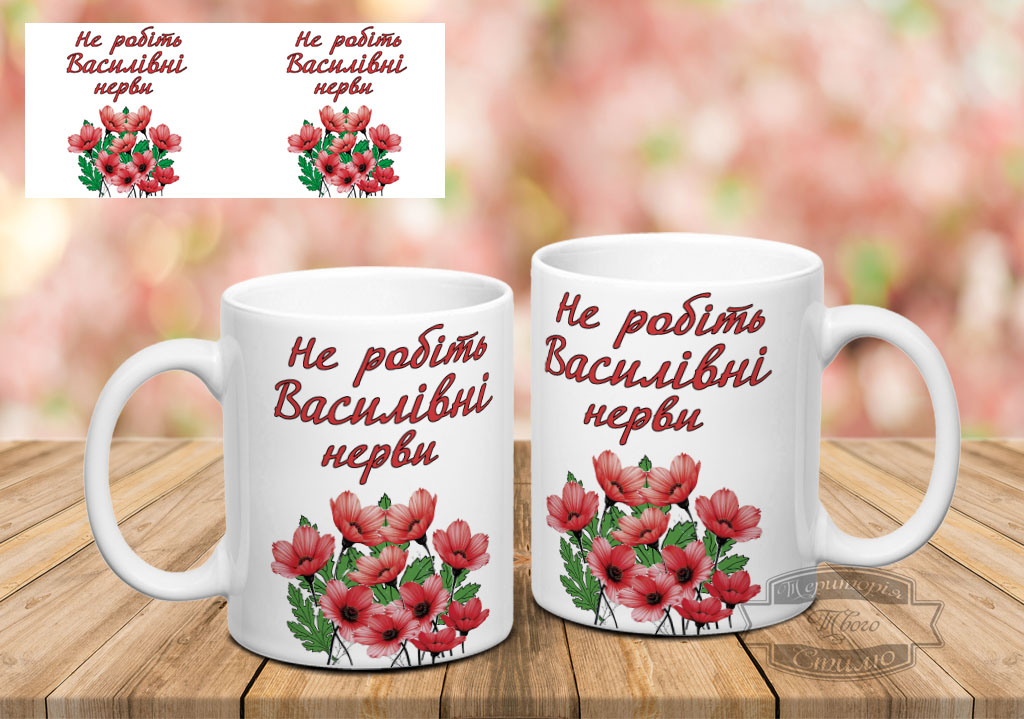 Чашка , з написом Не робіть Василівні нерви, мак .