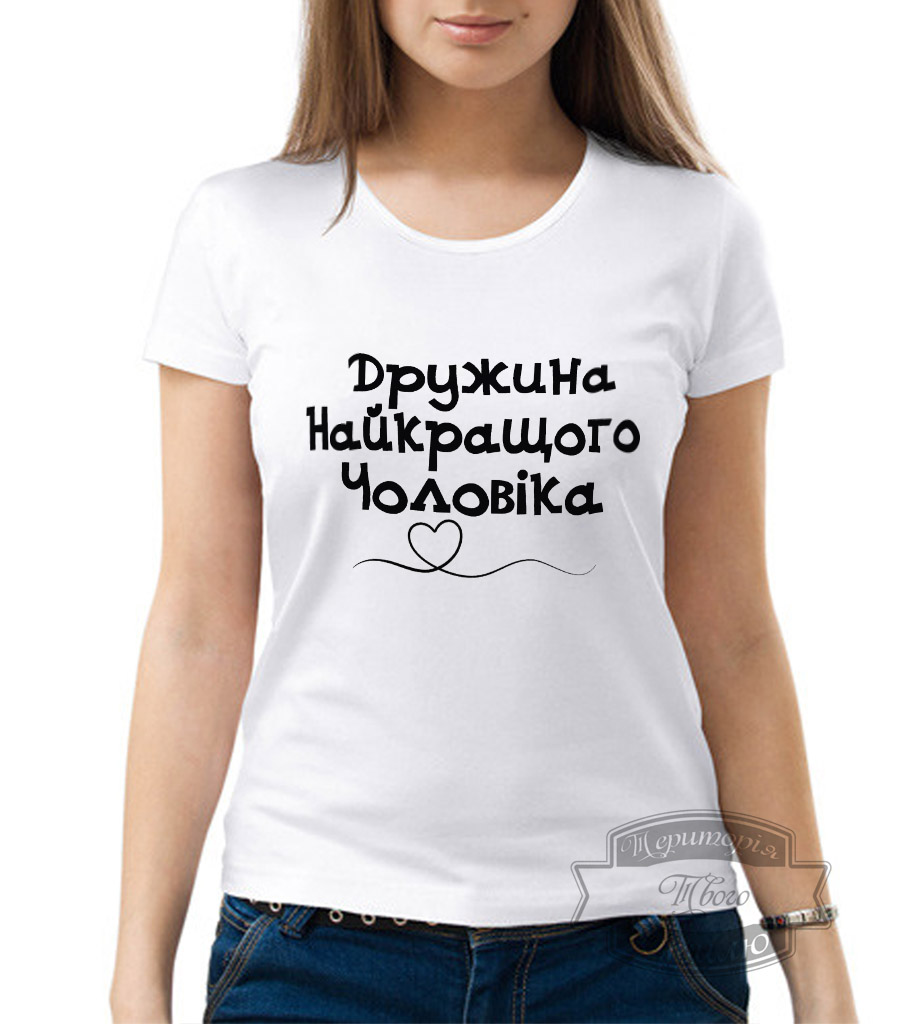 Футболка, біла з надписом «Дружина найкращого чоловіка ».