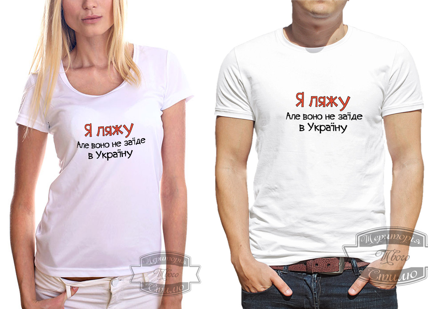Футболка, біла з надписом «Я ляжу, але воно не заїде в Україну ».