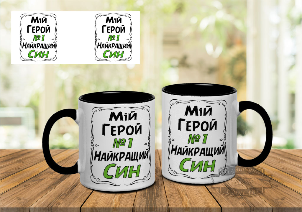 Чашка, з принтом “Мій герой номер один найкращий Син”.